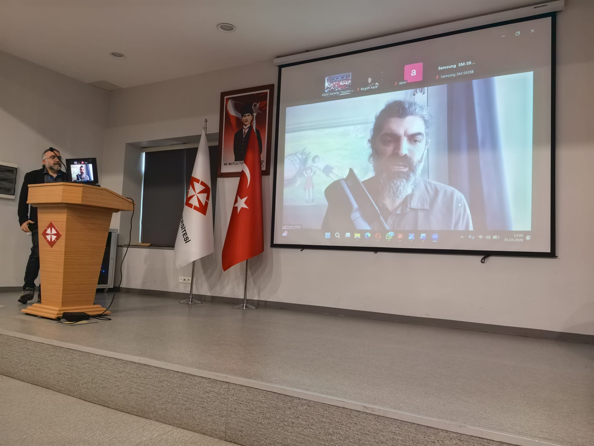 Robot Şair Deniz Yılmaz'ın hikaye anlatıcısı, sanat eserleri Ars Electronica, Todays Art, Transmediale gibi festivallerde sergilenmiş olan, çocuklar için Scratch kitabının yazarlarından olan, İskele47'nin ortak-kurucusu ve Istanbul Maker Fuarı'nın ortak-küratörü, 2007 yılından itibaren teknoloji ve sanat alanında festivaller düzenleyen Amber Platform'un ve katılımcı, barışçıl öğrenme toplulukları kurmayı hedefleyen Başka Bir Okul Mümkün Derneği'nin üyesi, Mimar Sinan Üniversitesi, Marmara Üniversitesi ve Berlin Ernst Busch Sanat Akademisi’nde “Günümüz Sanat Tarihi” ve “Kuklacılık İçin Yazılım” dersleri vermekte olan ve FLU TV’de “Sanat Sohbetleri” programını yürüten tasarımcı, sanatçı ve eğitmen Bager Akbay ile Görsel İletişim Tasarımı Bölümü tarafından değerli bir söyleşi gerçekleştirildi.